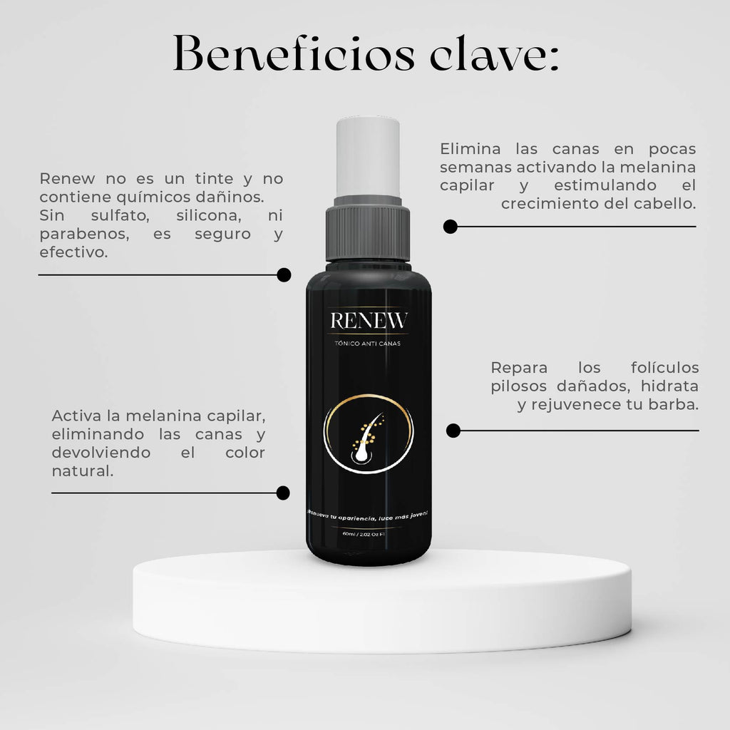 Activa la melanina capilar devolviendole al cabello y la barba su color natural.