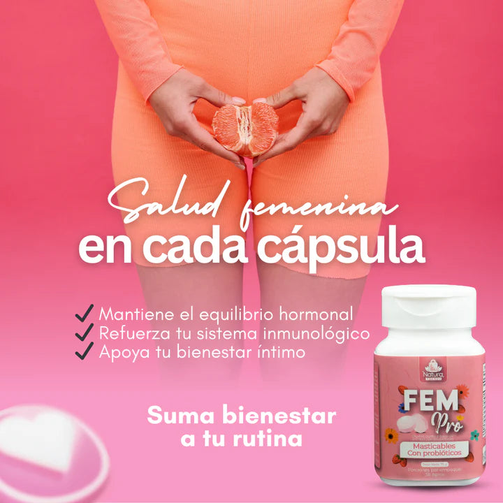 ¿Sufres cada mes con cólicos, cambios de humor o hinchazón? FEM PRO fue desarrollado especialmente para la salud femenina. Una fórmula 100% natural que actúa desde adentro, eliminando los síntomas que afectan tu bienestar diario.
